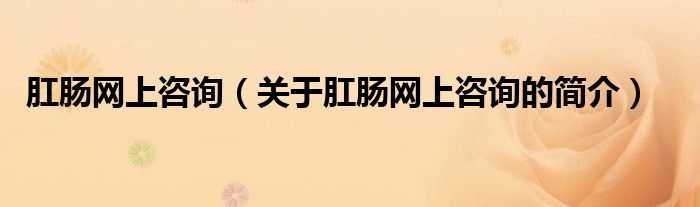 本文关于肛肠网上咨询的简介就讲解完毕,希望对大家有所帮助。