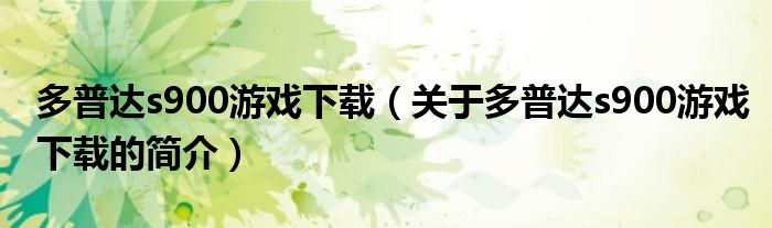 本文关于多普达s900游戏下载的简介就讲解完毕,希望对大家有所帮助。