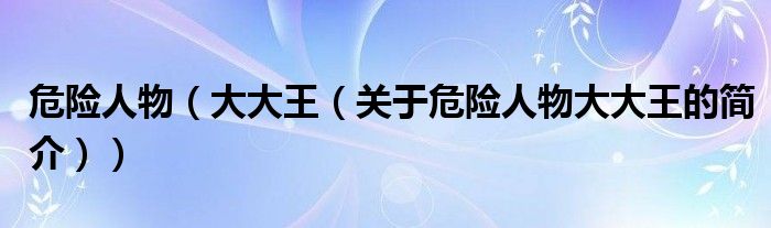 本文关于危险人物 大大王的简介就讲解完毕,希望对大家有所帮助。