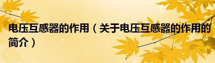 本文关于电压互感器的作用的简介就讲解完毕,希望对大家有所帮助。