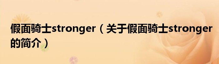 本文关于假面骑士stronger的简介就讲解完毕,希望对大家有所帮助。