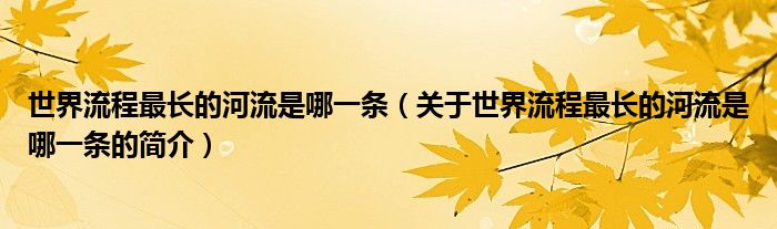 本文关于世界流程最长的河流是哪一条的简介就讲解完毕,希望对大家有所帮助。