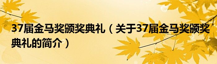 本文关于37届金马奖颁奖典礼的简介就讲解完毕,希望对大家有所帮助。