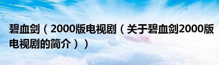 本文关于碧血剑 2000版电视剧的简介就讲解完毕,希望对大家有所帮助。