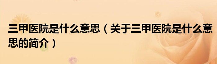 本文关于三甲医院是什么意思的简介就讲解完毕,希望对大家有所帮助。