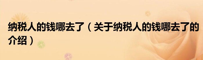 大家好,小安来为大家解答以上的问题。纳税人的钱哪去了,关于纳税人的钱哪去了的介绍很多人还不知道,现在让我们一起来看看吧!