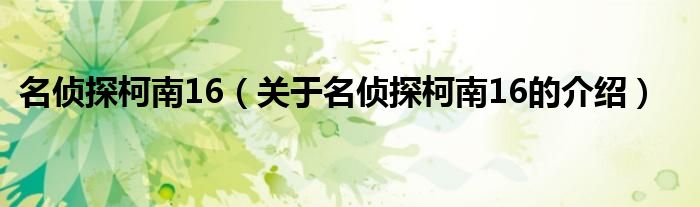 大家好,小安来为大家解答以上的问题。名侦探柯南16,关于名侦探柯南16的介绍很多人还不知道,现在让我们一起来看看吧!