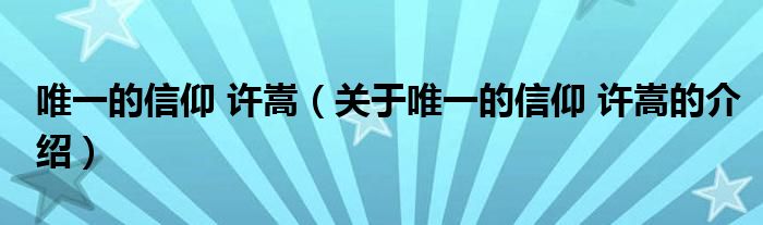 大家好,小安来为大家解答以上的问题。唯一的信仰 许嵩,关于唯一的信仰 许嵩的介绍很多人还不知道,现在让我们一起来看看吧!