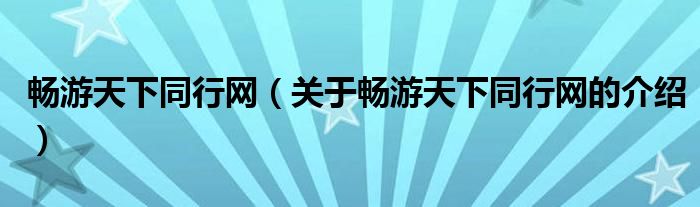 大家好,小安来为大家解答以上的问题。畅游天下同行网,关于畅游天下同行网的介绍很多人还不知道,现在让我们一起来看看吧!