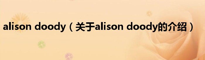 大家好,小安来为大家解答以上的问题。alison doody,关于alison doody的介绍很多人还不知道,现在让我们一起来看看吧!