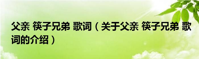 大家好,小安来为大家解答以上的问题。父亲 筷子兄弟 歌词,关于父亲 筷子兄弟 歌词的介绍很多人还不知道,现在让我们一起来看看吧!