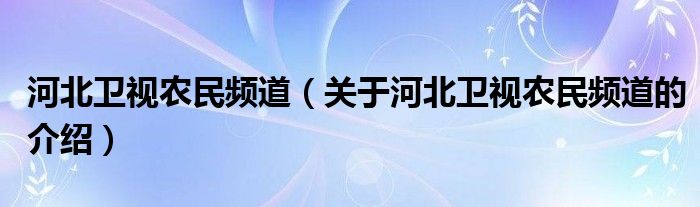 大家好,小安来为大家解答以上的问题。河北卫视农民频道,关于河北卫视农民频道的介绍很多人还不知道,现在让我们一起来看看吧!