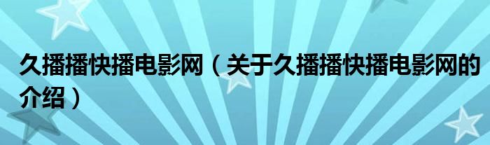 大家好,小安来为大家解答以上的问题。久播播快播电影网,关于久播播快播电影网的介绍很多人还不知道,现在让我们一起来看看吧!