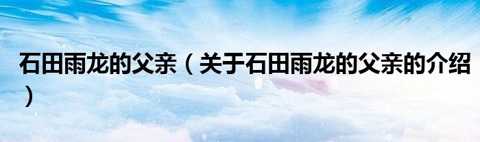 大家好,小安来为大家解答以上的问题。石田雨龙的父亲,关于石田雨龙的父亲的介绍很多人还不知道,现在让我们一起来看看吧!