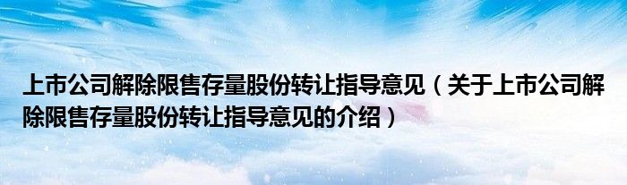 大家好,小安来为大家解答以上的问题。上市公司解除限售存量股份转让指导意见,关于上市公司解除限售存量股份转让指导意见的介绍很多人还不知道,现在让我们一起来看看吧!