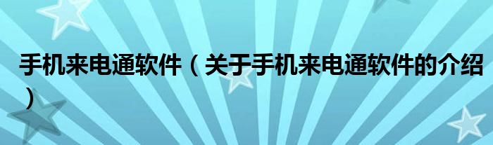大家好,小安来为大家解答以上的问题。手机来电通软件,关于手机来电通软件的介绍很多人还不知道,现在让我们一起来看看吧!