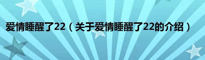 大家好,小安来为大家解答以上的问题。爱情睡醒了22,关于爱情睡醒了22的介绍很多人还不知道,现在让我们一起来看看吧!