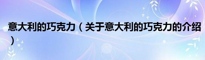 大家好,小安来为大家解答以上的问题。意大利的巧克力,关于意大利的巧克力的介绍很多人还不知道,现在让我们一起来看看吧!