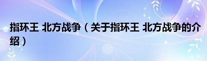 大家好,小安来为大家解答以上的问题。指环王 北方战争,关于指环王 北方战争的介绍很多人还不知道,现在让我们一起来看看吧!