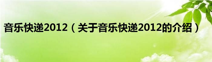 大家好,小安来为大家解答以上的问题。音乐快递2012,关于音乐快递2012的介绍很多人还不知道,现在让我们一起来看看吧!