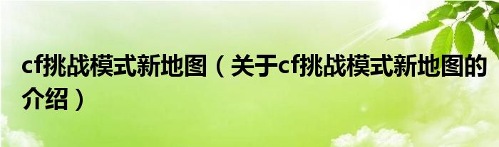 大家好,小安来为大家解答以上的问题。cf挑战模式新地图,关于cf挑战模式新地图的介绍很多人还不知道,现在让我们一起来看看吧!