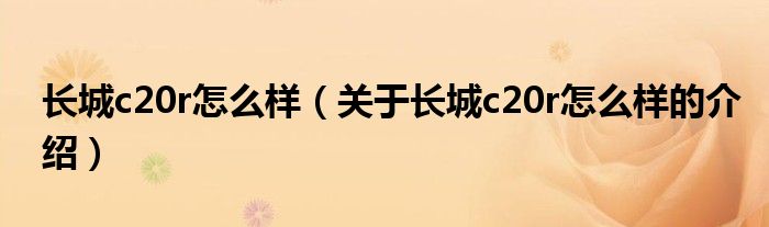 大家好,小安来为大家解答以上的问题。长城c20r怎么样,关于长城c20r怎么样的介绍很多人还不知道,现在让我们一起来看看吧!