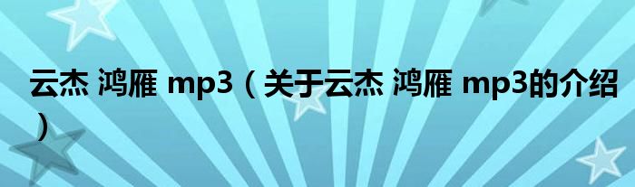 大家好,小安来为大家解答以上的问题。云杰 鸿雁 mp3,关于云杰 鸿雁 mp3的介绍很多人还不知道,现在让我们一起来看看吧!