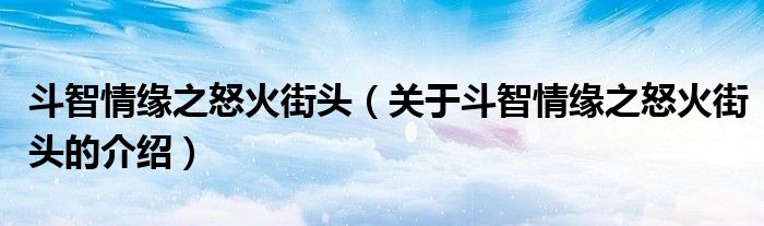 大家好,小安来为大家解答以上的问题。斗智情缘之怒火街头,关于斗智情缘之怒火街头的介绍很多人还不知道,现在让我们一起来看看吧!