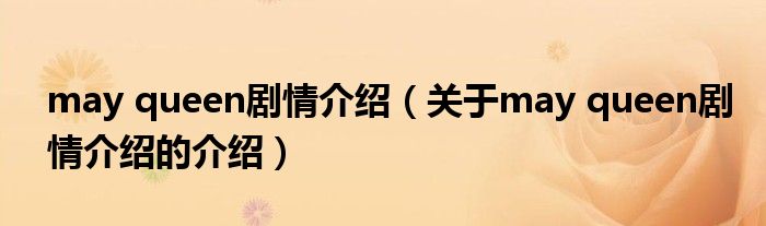 大家好,小安来为大家解答以上的问题。may queen剧情介绍,关于may queen剧情介绍的介绍很多人还不知道,现在让我们一起来看看吧!