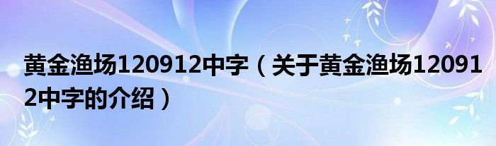 大家好,小安来为大家解答以上的问题。黄金渔场120912中字,关于黄金渔场120912中字的介绍很多人还不知道,现在让我们一起来看看吧!