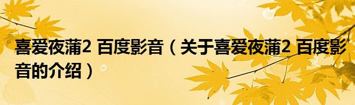 大家好,小安来为大家解答以上的问题。喜爱夜蒲2 百度影音,关于喜爱夜蒲2 百度影音的介绍很多人还不知道,现在让我们一起来看看吧!