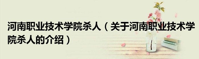 大家好,小安来为大家解答以上的问题。河南职业技术学院杀人,关于河南职业技术学院杀人的介绍很多人还不知道,现在让我们一起来看看吧!