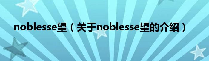 大家好,小安来为大家解答以上的问题。noblesse望,关于noblesse望的介绍很多人还不知道,现在让我们一起来看看吧!