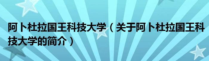 本文关于阿卜杜拉国王科技大学的简介就讲解完毕,希望对大家有所帮助。