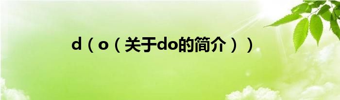 本文关于d o的简介就讲解完毕,希望对大家有所帮助。
