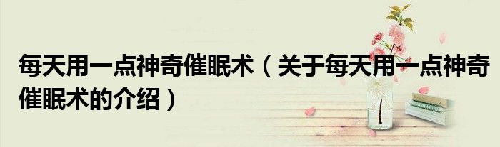 大家好,小安来为大家解答以上的问题。每天用一点神奇催眠术,关于每天用一点神奇催眠术的介绍很多人还不知道,现在让我们一起来看看吧!