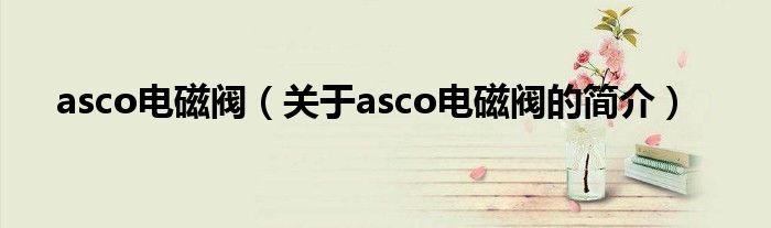 本文关于asco电磁阀的简介就讲解完毕,希望对大家有所帮助。
