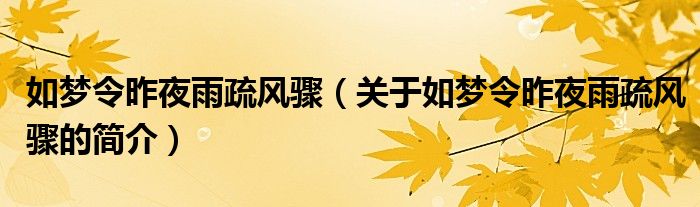 本文关于如梦令昨夜雨疏风骤的简介就讲解完毕,希望对大家有所帮助。