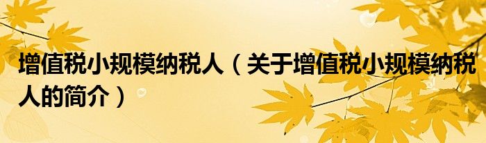 本文关于增值税小规模纳税人的简介就讲解完毕,希望对大家有所帮助。