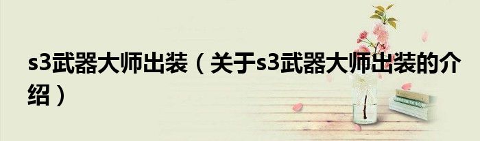 大家好,小安来为大家解答以上的问题。s3武器大师出装,关于s3武器大师出装的介绍很多人还不知道,现在让我们一起来看看吧!