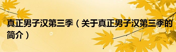 大家好,真正男子汉第三季,关于真正男子汉第三季的简介很多人还不知道,现在让我们一起来看看吧!