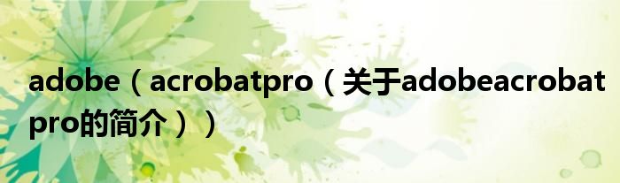 大家好,adobe acrobat pro,关于adobe acrobat pro的简介很多人还不知道,现在让我们一起来看看吧!