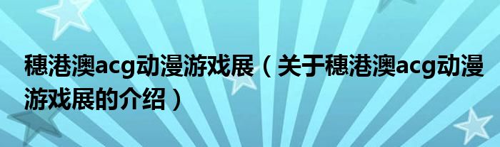大家好,小安来为大家解答以上的问题。穗港澳acg动漫游戏展,关于穗港澳acg动漫游戏展的介绍很多人还不知道,现在让我们一起来看看吧!