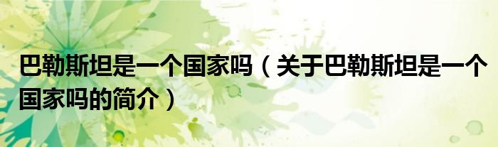 大家好,巴勒斯坦是一个国家吗,关于巴勒斯坦是一个国家吗的简介很多人还不知道,现在让我们一起来看看吧!