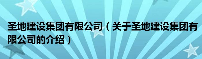 大家好,小安来为大家解答以上的问题。圣地建设集团有限公司,关于圣地建设集团有限公司的介绍很多人还不知道,现在让我们一起来看看吧!