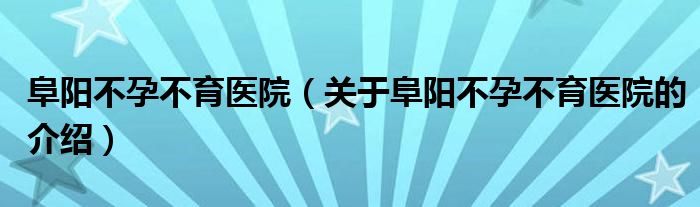 大家好,小安来为大家解答以上的问题。阜阳不孕不育医院,关于阜阳不孕不育医院的介绍很多人还不知道,现在让我们一起来看看吧!