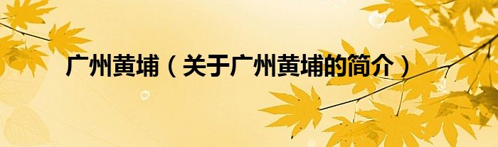 大家好,广州黄埔,关于广州黄埔的简介很多人还不知道,现在让我们一起来看看吧!