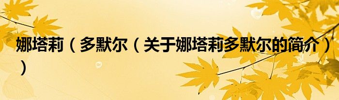 本文关于娜塔莉 多默尔的简介就讲解完毕,希望对大家有所帮助。