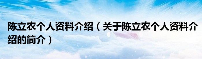 大家好,陈立农个人资料介绍,关于陈立农个人资料介绍的简介很多人还不知道,现在让我们一起来看看吧!