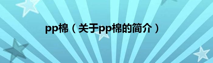 本文关于pp棉的简介就讲解完毕,希望对大家有所帮助。